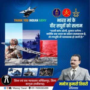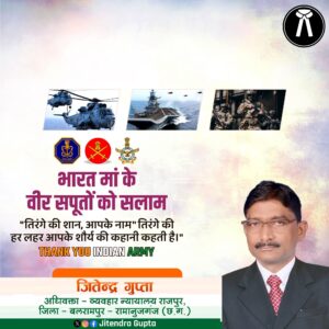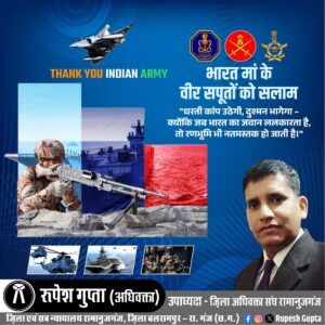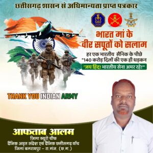 Home/छत्तीसगढ़/भारत मां के वीर सपूतों को सलाम छत्तीसगढ़देश भारत मां के वीर सपूतों को सलाम हर एक भारतीय सैनिक के पीछे 140 करोड़ दिलों की एक ही धड़कन ....! जय हिन्द भारतीय सेना अमर रहे ! Md. Wasim BariMay 13, 20250 133 Less than a minute Facebook Twitter LinkedIn Tumblr Pinterest Reddit WhatsApp हर एक भारतीय सैनिक के पीछे 140 करोड़ दिलों की एक ही धड़कन ….! जय हिन्द भारतीय सेना अमर रहे ! Md. Wasim BariMay 13, 20250 133 Less than a minute Facebook Twitter LinkedIn Tumblr Pinterest Reddit WhatsApp Share Facebook Twitter LinkedIn Tumblr Pinterest Reddit VKontakte Share via Email Print