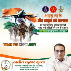 हर एक भारतीय सैनिक के पीछे 140 करोड़ दिलों की एक ही धड़कन ....! जय हिन्द भारतीय सेना अमर रहे !