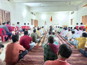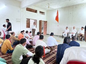 जिसमे अपने ओजस्वी , तेजमय बौद्धिक उद्बोधन में माननीय जिला प्रचारक श्री जितेन्द्र शर्मा जी ने माँ भारती को अपना जीवन समर्पण करने तथा भगवा ध्वज को गुरु मान पूजा करने की सीख दी !