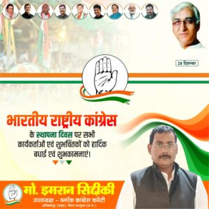 उक्त आशय का विचार व्यक्त करते हुए कांग्रेस स्थापना दिवस के अवसर पर कांग्रेस अल्पसंख्यक प्रकोष्ठ के जिलाध्यक्ष जनाब राशिद अहमद अंसारी साहब ने आगे कहा, कि कांग्रेस की यह ख़ास पहचान रही है कि इसकी क़यादत हमेशा गंगा – जमुनी तहज़ीब, सेकुलरिज़्म और राष्ट्रीय एकता की प्रतीक रही। महात्मा गांधी ने सत्य और अहिंसा का संदेश दिया, पंडित जवाहरलाल नेहरू ने आधुनिक और वैज्ञानिक भारत की नींव रखी, सरदार वल्लभभाई पटेल ने देश को एकता के सूत्र में पिरोया, इंदिरा गांधी ने साहस और आत्मनिर्भरता का रास्ता दिखाया और राजीव गांधी ने भारत को 21वीं सदी की सोच से जोड़ा।