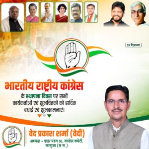 आज कांग्रेस स्थापना दिवस के मौक़े पर यह अहद दोहराने का वक़्त है कि हम डरेंगे नहीं, झुकेंगे नहीं और सच के रास्ते से पीछे नहीं हटेंगे। बूथ से लेकर सड़क तक, हर ज़ुल्म और हर नाइंसाफ़ी के ख़िलाफ़ मज़बूती से खड़े रहेंगे। 140 साल पहले जो मशाल जली थी, आज उसे और तेज़, और ऊँचा जलाना होगा।