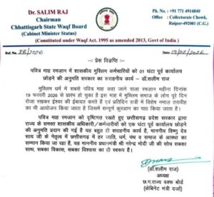 इन परस्पर विरोधी बयानों ने अल्पसंख्यक समाज विशेषकर छत्तीसगढ़ के मुस्लिम समुदाय को गहरी पीड़ा और असमंजस में डाल दिया है। पवित्र रमज़ान में इस प्रकार की भ्रामक जानकारी का प्रसार अत्यंत दुर्भाग्यपूर्ण है और इससे समाज की भावनाएँ आहत हुई हैं।